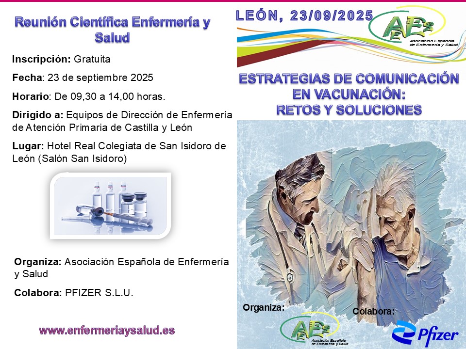 LA ASOCIACION ESPAÑOLA DE ENFERMERIA Y SALUD CON LA COLABORACION DE PFIZER S.L.U. ORGANIZAN UNA NUEVA JORNADA DE ENFERMERIA Y SALUD.